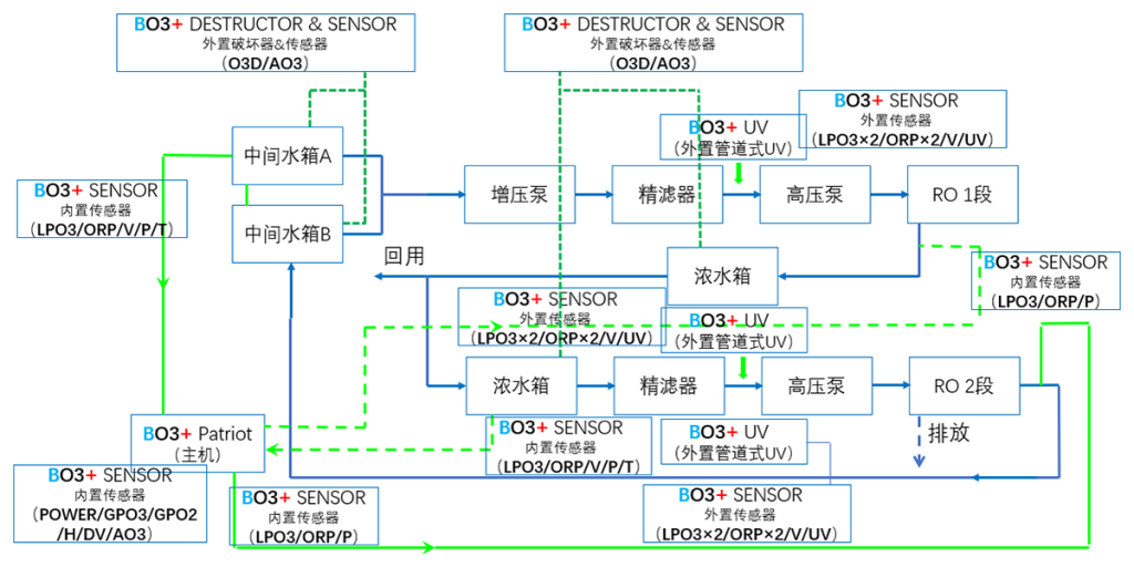 设计主要包括管线臭氧精准投加、臭氧尾气处理、RO膜保护等三个方面。