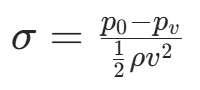 空化数(Cavitation number, σ),“阻止空化的压力差” 与 “流动动压” 的比值,反映空化的难易程度